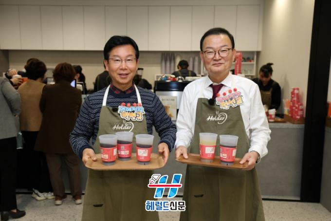 [Çì·²µå½Å¹® = ³ë½Â¾ð ±âÀÚ] ¹Úº´±Ô ±¤»ê±¸Ã»Àå°ú Á¤¼±±³ ´ë¸í¿Ü½Ä»ê¾÷ ´ëÇ¥°¡ 27ÀÏ ±¤»ê±¸Ã» 1Ãþ ¸ðµÎÀÇ ½°ÅÍ Á¶¼ºÀ» ±â³äÇØ û°¢Àå¾ÖÀÎÀÇ ÀÚ¸³À» µ½´Â ÀÏÅÍÀÎ ±¸Ã» ³» ¡®Ä«ÆäȦ´õ¡¯¿¡¼ ÀÏÀÏ ¸í¿¹Á¡Àå »çȸ°øÇåȰµ¿À» ÁøÇàÇß´Ù.
