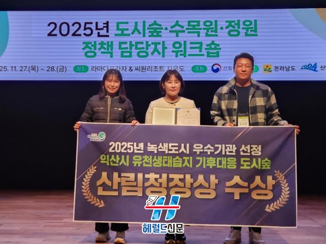 ÀÍ»ê½Ã´Â »ê¸²Ã» ÁÖ°ü '2025³â ³ì»öµµ½Ã ¿ì¼ö»ç·Ê-±âÈÄ´ëÀÀµµ½Ã½£ ºÐ¾ß'¿¡¼ À¯Ãµ»ýŽÀÁö ±âÈÄ´ëÀÀµµ½Ã½£ÀÇ ¿ì¼ö¼ºÀ» ÀÎÁ¤¹Þ¾Æ »ê¸²Ã»Àå»óÀ» ¹Þ¾Ò´Ù.