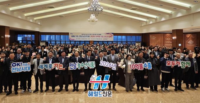 [Çì·²µå½Å¹® = ³ë½Â¾ð ±âÀÚ] Àü¶ó³²µµ´Â 28ÀÏ ³²¾Ç ½ºÄ«ÀÌ¿þµùÄÁº¥¼Ç¿¡¼ ³ó¼ö»ê ¼öÃâ±â¾÷, ¼öÃâ À¯°ü±â°ü µî 200¿© ¸íÀÌ Âü¼®ÇÑ °¡¿îµ¥ ¡®2025 ³ó¼ö»ê½Äǰ ¼öÃâ±â¾÷ ÀüÁø´ëȸ¡¯¸¦ ¿¾î 2026³â ¼öÃâ 10¾ï ´Þ·¯ ´Þ¼º °áÀǸ¦ ´ÙÁ³´Ù.