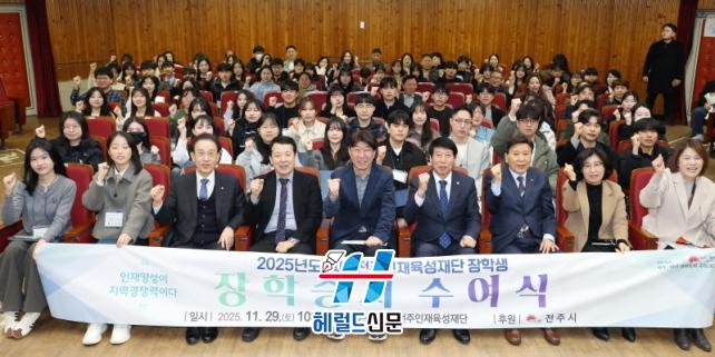 ÀüÁÖÀÎÀçÀ°¼ºÀç´ÜÀº 29ÀÏ ÀüÁÖ½Ãû °´ç¿¡¼ ¡®2025³âµµ 2Çбâ (Àç)ÀüÁÖÀÎÀçÀ°¼ºÀç´Ü ÀåÇлý ÀåÇÐÁõ¼ ¼ö¿©½Ä¡¯À» °³ÃÖÇϰí, ÀåÇлýÀ¸·Î ¼±¹ßµÈ 70¸íÀÇ Çлý¿¡°Ô ÀåÇÐÁõ¼¸¦ ¼ö¿©Çß´Ù.