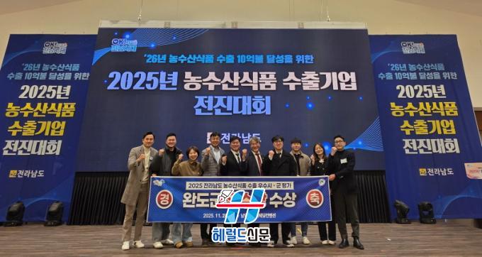 [Çì·²µå½Å¹® = ³ë½Â¾ð ±âÀÚ] ¿Ïµµ±ºÀº Áö³ 11¿ù 28ÀÏ Àü³² ¹«¾È±º¿¡¼ ¿¸° ¡¸2025³â Àü³² ³ó¼ö»ê½Äǰ ¼öÃâ ¿ì¼ö ½Ã±º Æò°¡¡¹¿¡¼ 22°³ ½Ã±º Áß ¿ì¼ö»óÀ» ¼ö»óÇß´Ù.