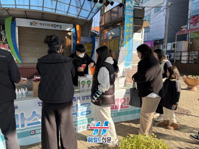 ±ºÀº 30ÀÏ ÀåÈï Åä¿ä½ÃÀå ÀÏ¿ø¿¡¼ ½ÃÀå ¹æ¹®°´À» ´ë»óÀ¸·Î ¿¹¹æÁ¢Á¾ µ¶·Á, ¸¶½ºÅ© µî ¿¹¹æ ¹°Ç° ¹èºÎ, °¨¿°º´ ¿¹¹æ¼öÄ¢ È«º¸ µîÀ» ½Ç½ÃÇÏ¸ç ¸¶½ºÅ© Âø¿ë Ä·ÆäÀÎÀ» ÁøÇàÇß´Ù.
