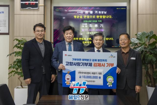 [Çì·²µå½Å¹® = ³ë½Â¾ð ±âÀÚ] ±èÁ¦½Ã´Â 2ÀÏ ¢ß¿ì¼®ÀÌ¿£¾¾ ÃÖ¿ë±â ȸÀåÀÌ ±èÁ¦½Ã °íÇâ»ç¶û±âºÎÁ¦¿¡ 1,000¸¸¿øÀ» ±âŹÇß´Ù°í ¹àÇû´Ù.