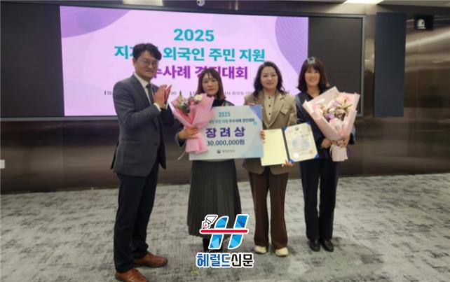 [Çì·²µå½Å¹® = ³ë½Â¾ð ±âÀÚ] ¼±ÍÆ÷½Ã´Â Áö³ 1ÀÏ ÇàÁ¤¾ÈÀüºÎ°¡ ÁÖ°üÇÑ 2025³â ÁöÀÚü ¿Ü±¹ÀÎÁֹΠÁö¿ø ¿ì¼ö»ç·Ê °æÁø´ëȸ¿¡¼ ÀÚ³à¿Í ÇÔ²² ÀÚ¶ó´Â ÇູÇ÷§Æû ¡®´Ù¹®È¾ö¸¶Çб³¡¯ ¿î¿µ »ç¾÷À¸·Î Àå·Á»óÀ» ¼ö»óÇß´Ù°í ¹àÇû´Ù.