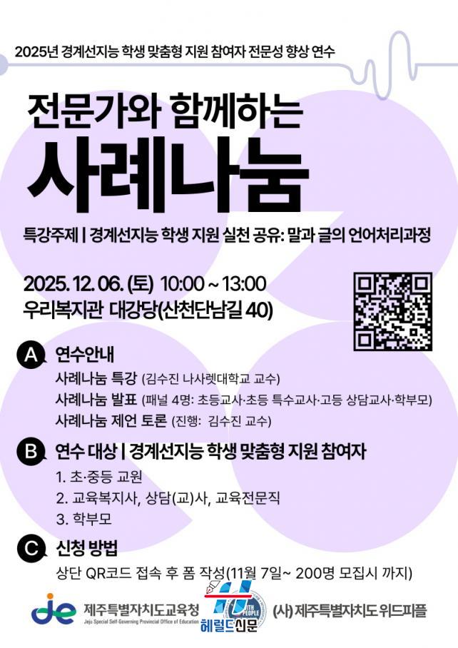 [Çì·²µå½Å¹® = Àü¿µ±Ô ±âÀÚ] Á¦ÁÖÆ¯º°ÀÚÄ¡µµ±³À°Ã» ±âÃÊÇзÂÁö¿ø¼¾ÅÍ´Â ¿À´Â 6ÀÏ Á¦Áֽà »êõ´Ü³²±æ 40¿¡ À§Ä¡ÇÑ ¿ì¸®º¹Áö°ü ´ë°´ç¿¡¼ Áö³ 6°³¿ù°£ ÁøÇàµÈ ¡®°æ°è¼±Áö´É Çлý ¸ÂÃãÇü Áö¿ø ¿¬¼ö¡¯ÀÇ ¼º°ú¸¦ °øÀ¯ÇÏ´Â ¼º°ú°øÀ¯È¸¸¦ °³ÃÖÇÑ´Ù.