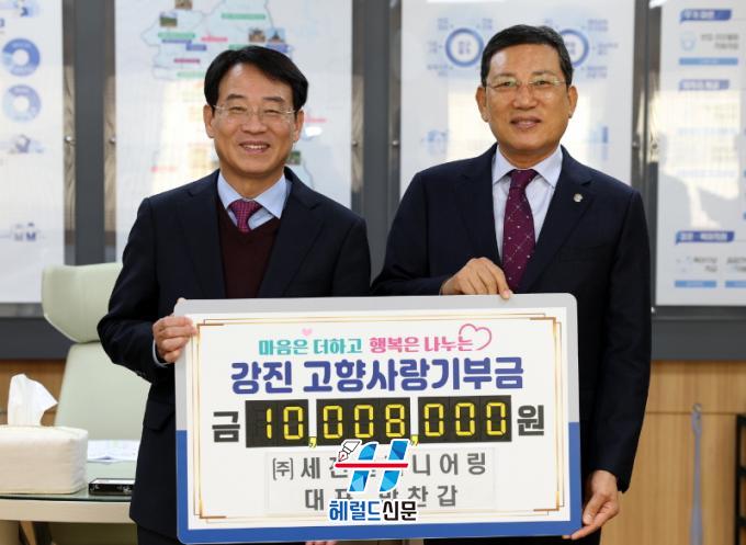 Àü±â¼³°è, ½ÅÀç»ý¿¡³ÊÁöÀåÄ¡ Á¦Á¶¾÷üÀÎ ¢ß¼¼Áø¿£Áö´Ï¾î¸µÀÇ ¹ÚÂù°© ´ëÇ¥´Â2023³â 500¸¸¿ø, Áö³ÇØ 500¸¸¿ø ±âŹ¿¡ ÀÌ¾î ¿ÃÇØ 1,000¸¸ ¿øÀ» °íÇâ»ç¶û¿¡ ±âºÎÇÏ¸ç °¨µ¿À» ÀھƳ´Ù. ¹Ú ´ëÇ¥´Â ÀÎÀçÀ°¼ºÀåÇÐȸ, ÀåÇй®ÈÀç´Ü, ÀÌ¿ôµ½±â ¼º±Ý µî ²ÙÁØÇÑ ±âºÎ¿Í °ü½ÉÀ» ÅëÇØ Áö¿ª»çȸ¿¡ °øÇåÀ» ÇØ¿Ô´Ù.