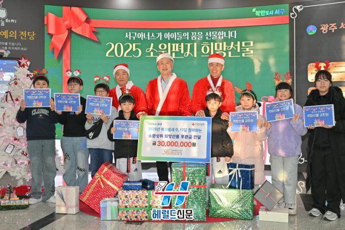 [Çì·²µå½Å¹® = ³ë½Â¾ð ±âÀÚ] ±¤ÁÖ±¤¿ª½Ã ¼±¸ °í¾× ±âºÎÀÚ ¸ðÀÓ ¡®¼±¸¾Æ³Ê½º¡¯°¡ 12¿ù »êŸ°¡ µÇ¾î ¾ÆÀ̵鿡°Ô Ưº°ÇÑ ¼±¹°À» ÀüÇÑ´Ù. ¼±¸´Â 3ÀÏ ¼±¸¾Æ³Ê½º·ÎºÎÅÍ Áö¿ª ¾Æµ¿‧û¼Ò³âÀ» À§ÇÑ ¡®¼Ò¿ø¼ºÃë Èñ¸Á¼±¹°¡¯ ÈÄ¿ø±Ý 3000¸¸¿øÀ» Àü´Þ¹Þ¾Ò´Ù°í ¹àÇû´Ù.