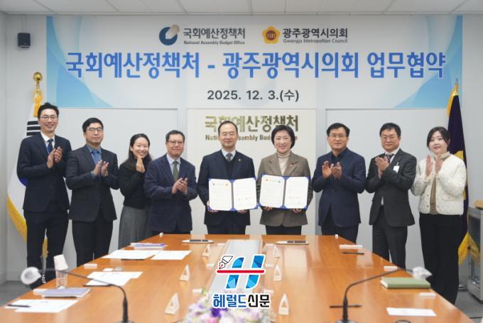 [Çì·²µå½Å¹® = ³ë½Â¾ð ±âÀÚ] ±¤ÁÖ±¤¿ª½ÃÀÇȸ(ÀÇÀå ½Å¼öÁ¤)´Â 12¿ù 3ÀÏ(¼ö) ¿ÀÀü10½Ã 30ºÐ ±¹È¸ÀÇÁ¤°ü¿¡¼ ±¹È¸¿¹»êÁ¤Ã¥Ã³(óÀå Áöµ¿ÇÏ)¿Í ÀçÁ¤ ºÐ¼® ºÐ¾ß Çù·ÂÀ» À§ÇÑ ¾÷¹«Çù¾à(MOU)À» ü°áÇß´Ù.