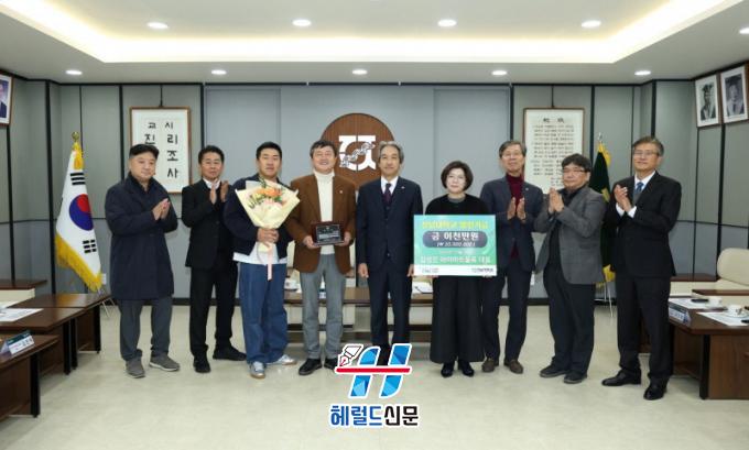 [Çì·²µå½Å¹® = ³ë½Â¾ð ±âÀÚ] Àü³²´ëÇб³(ÃÑÀå À̱ٹè)´Â 11¿ù 26ÀÏ(¼ö) ¿ÍÀ̸¶Æ®¹°·ù ±è¼ºÁø ´ëÇ¥·ÎºÎÅÍ ¹ßÀü±â±Ý 2õ¸¸ ¿øÀ» Àü´Þ¹Þ¾Ò´Ù°í ¹àÇû´Ù.