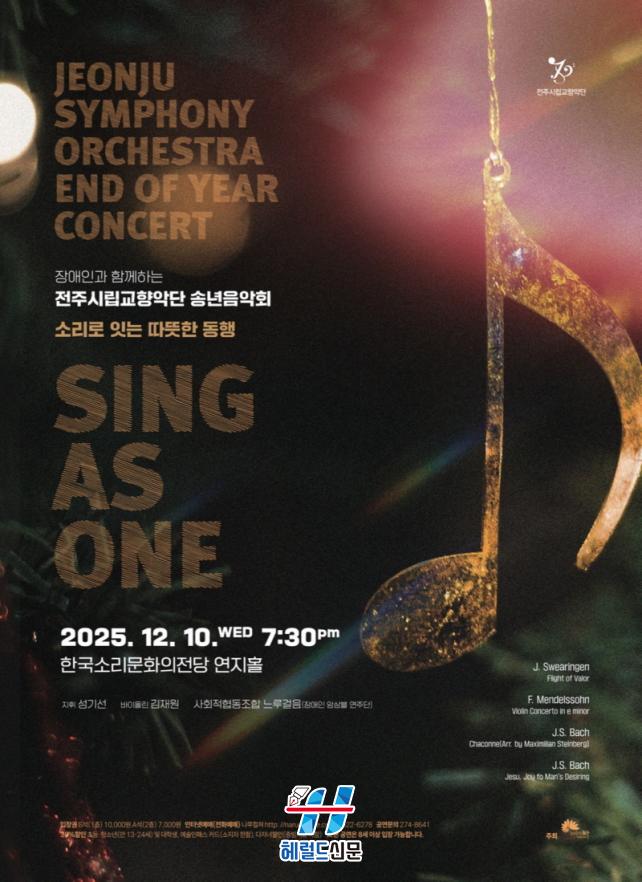 ÀüÁֽø³±³Çâ¾Ç´ÜÀº ¿À´Â 10ÀÏ ¿ÀÈÄ 7½Ã 30ºÐ, Çѱ¹¼Ò¸®¹®ÈÀÇÀü´ç ¿¬ÁöȦ¿¡¼ Àå¾ÖÀΰú ÇÔ²²ÇÏ´Â ¼Û³âÀ½¾Çȸ ¡®¼Ò¸®·Î ÀÕ´Â µû¶æÇÑ µ¿Çà(Sing as One)¡¯À» ¼±º¸ÀδÙ.