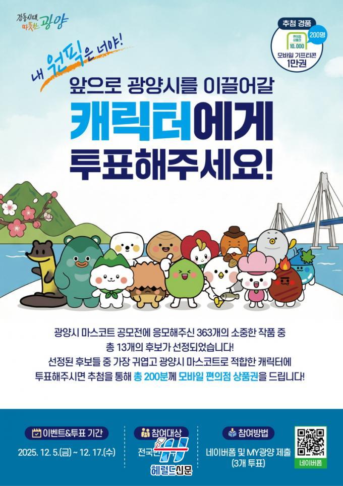 [Çì·²µå½Å¹® = ³ë½Â¾ð ±âÀÚ] ±¤¾ç½Ã´Â ¾ÕÀ¸·Î ½ÃÀÇ Á¤Ã¼¼º°ú À̹ÌÁö¸¦ ´ëÇ¥ÇÒ »õ·Î¿î ij¸¯ÅÍ ¼±Á¤À» À§ÇØ 12¿ù 5ÀϺÎÅÍ 17ÀϱîÁö ¼±È£µµ ÅõÇ¥¸¦ ÁøÇàÇÑ´Ù°í 5ÀÏ ¹àÇû´Ù.