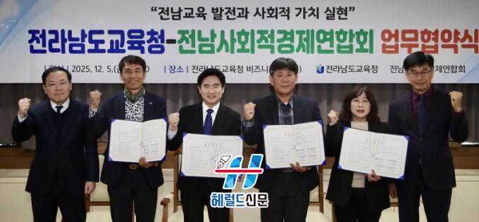 [Çì·²µå½Å¹® = ³ë½Â¾ð ±âÀÚ] Àü¶ó³²µµ±³À°Ã»°ú Àü³²»çȸÀû°æÁ¦±â¾÷¿¬ÇÕȸ(Àü³²»çȸÀû±â¾÷Çùȸ, Àü³²¸¶À»±â¾÷ÇùÀÇȸ, Àü³²ÀÚȰ±â¾÷Çùȸ)´Â 12¿ù 5ÀÏ Àü¶ó³²µµ±³À°Ã»¿¡¼ ¡®°Ç°ÇÑ ±³À°È¯°æ Á¶¼º ¹× Áö¿ª»çȸ¿Í »ó»ý¹ßÀüÀ» À§ÇÑ ¾÷¹«Çù¾à¡¯À» ü°áÇß´Ù.