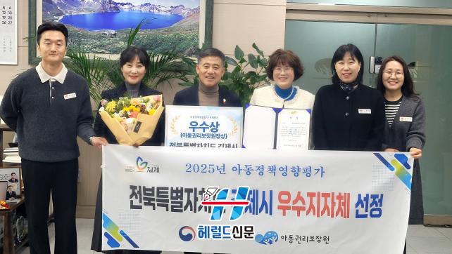 Á¤¼ºÁÖ ±èÁ¦½ÃÀåÀº¡°±èÁ¦½Ã°¡ 2025³â ¾Æµ¿Á¤Ã¥¿µÇâÆò°¡¿¡¼ ÀüºÏƯº°ÀÚÄ¡µµ ³» À¯ÀÏÇÑ ¿ì¼ö ÁöÀÚü·Î ¼±Á¤µÈ °ÍÀº ¾Æµ¿ÀÇ ±Ç¸®¸¦ ÃÖ¿ì¼± °¡Ä¡·Î µÎ°í Á¤Ã¥À» ÃßÁøÇØ ¿Â ³ë·ÂÀÇ °á°ú¡±¶ó¸ç ¡°¾ÕÀ¸·Îµµ ¾Æµ¿ÀÌ ¾ÈÀüÇϰí Á¸Áß¹Þ´Â ¾Æµ¿Ä£Èµµ½Ã Á¶¼ºÀ» À§ÇØ ´Ù¾çÇÑ ¾Æµ¿±Ç¸® ÁõÁø »ç¾÷À» Àû±Ø ÃßÁøÇϰڴÙ.¡±°í ¸»Çß´Ù.