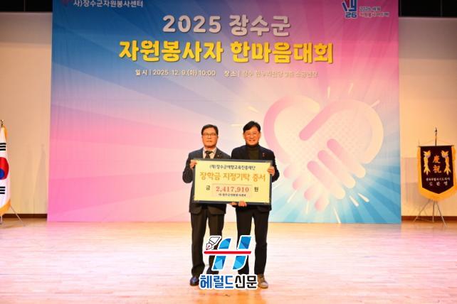 [Çì·²µå½Å¹® = ³ë½Â¾ð ±âÀÚ] Àå¼ö±ºÀº 9ÀÏ ¿¸° ¡®Àå¼ö±º ÀÚ¿øºÀ»çÀÚ ÇѸ¶À½´ëȸ¡¯¿¡¼ Àå¼ö±ºÀÚ¿øºÀ»ç¼¾ÅͰ¡ (Àç)Àå¼ö±º¾ÖÇâ±³À°ÁøÈïÀç´Ü¿¡ ÀåÇбÝÀ» ±âŹÇß´Ù°í ¹àÇû´Ù.