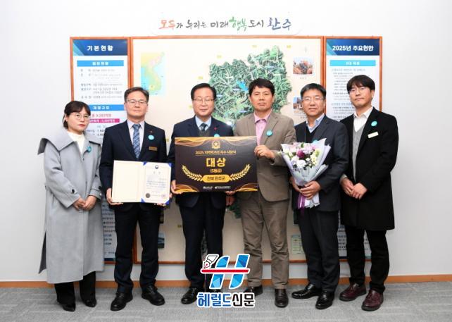 [Çì·²µå½Å¹® = ³ë½Â¾ð ±âÀÚ] ¿ÏÁÖ±ºÀÌ ¡®2025³â Áö¿ª ¸Ô°Å¸®Áö¼ö Æò°¡¡¯¿¡¼ Àü±¹¿¡¼ À¯ÀÏÇÏ°Ô 6³â ¿¬¼Ó ´ë»óÀ» ¼ö»óÇÏ¸ç ¸Ô°Å¸® Á¤Ã¥ ¼±µµ ÁöÀÚü·Î¼ÀÇ À§»óÀ» ´Ù½Ã Çѹø ÀÔÁõÇß´Ù.