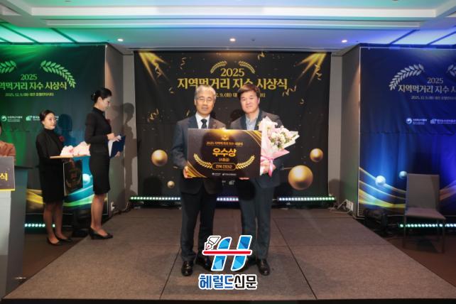 [Çì·²µå½Å¹® = ³ë½Â¾ð ±âÀÚ] Áø¾È±ºÀÌ ³ó¸²Ãà»ê½ÄǰºÎ¿Í Çѱ¹³ó¼ö»ê½ÄǰÀ¯Åë°ø»ç(aT)°¡ ÁÖ°üÇÏ´Â ¡®2025³â Áö¿ª¸Ô°Å¸® Áö¼ö¡¯ Æò°¡¿¡¼ Aµî±Þ ¿ì¼ö»óÀ» ¼ö»óÇϸç 2³â ¿¬¼Ó ¿ì¼ö ÁöÀÚü·Î À̸§À» ¿Ã·È´Ù.