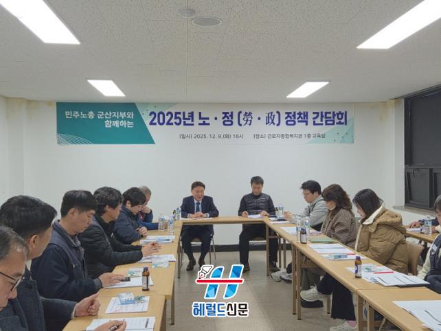 [Çì·²µå½Å¹® = ³ë½Â¾ð ±âÀÚ] ±º»ê½Ã¿Í ¹ÎÁÖ³ëÃÑ ±º»ê½ÃÁöºÎ°¡ Áö³ 9ÀÏ Áö¿ª ³ëµ¿ Çö¾ÈÀ» ³íÀÇÇÏ°í »ó»ýÀÇ ³ëµ¿Á¤Ã¥ ¹æ¾È µµÃâÀ» À§ÇØ ³ëÁ¤ Á¤Ã¥°£´ãȸ¸¦ °³ÃÖÇß´Ù.