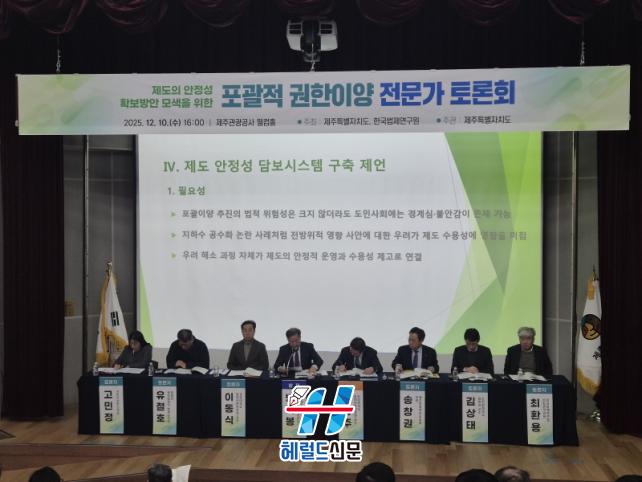 [Çì·²µå½Å¹® = ³ë½Â¾ð ±âÀÚ] Á¦ÁÖÆ¯º°ÀÚÄ¡µµ°¡ Æ÷°ýÀû ±ÇÇÑÀ̾ç Á¦µµÀÇ ½ÇÈ¿¼º°ú ¾ÈÁ¤¼º È®º¸¸¦ À§ÇØ Àü¹®°¡ Åä·Ðȸ¸¦ °³ÃÖÇÑ °¡¿îµ¥, Àü¹®°¡µéÀº Á¦µµÀÇ ¹ýÀû Ÿ´ç¼ºÀ» È®ÀÎÇÏ¸ç °øÃ»È¸ Àǹ«È¡¤±ÔÁ¦½É»ç °È µî ¾ÈÁ¤Àû ¿î¿µ ¹æ¾ÈÀ» ±¸Ã¼ÈÇß´Ù.