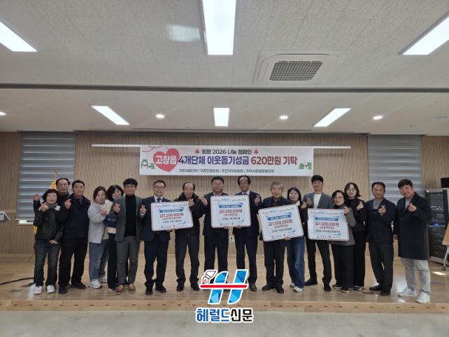 [Çì·²µå½Å¹® = ³ë½Â¾ð ±âÀÚ] °íⱺ °íâÀ¾ 4°³ ´Üü(±â°ü»çȸ´ÜüÇù(ȸÀå À̱æ¼ö), ÀÌÀå´ÜÇù(ȸÀå ¹®µ¿ÁÖ), ÁÖ¹ÎÀÚÄ¡À§(À§¿øÀå ¼ºÈ«Á¦), Áö¿ª»çȸº¸ÀåÇù(À§¿øÀå ÀÓÁø¿ë))°¡ ¾î·Á¿î ÀÌ¿ôÀ» µ½±â À§ÇÑ ¼º±Ý 620¸¸¿øÀ» ±âŹÇß´Ù.