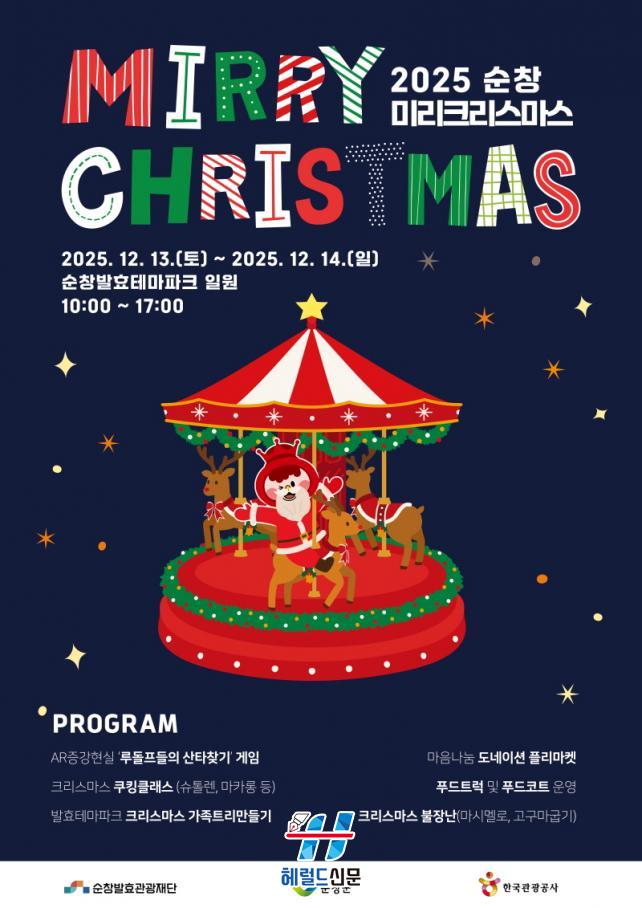 [Çì·²µå½Å¹® = ³ë½Â¾ð ±âÀÚ] (Àç)¼øÃ¢¹ßÈ¿°ü±¤Àç´Ü(ÀÌ»çÀå ÃÖ¿µÀÏ ¼øÃ¢±º¼ö)Àº ¿À´Â 13ÀÏ(Åä)ºÎÅÍ 14ÀÏ(ÀÏ)±îÁö ÀÌÆ²°£, ¼øÃ¢¹ßÈ¿Å׸¶ÆÄÅ©¿¡¼ ¡®2025 ¼øÃ¢ ¹Ì¸® Å©¸®½º¸¶½º¡¯ °Ü¿ï ÃàÁ¦¸¦ °³ÃÖÇÑ´Ù°í ¹àÇû´Ù.