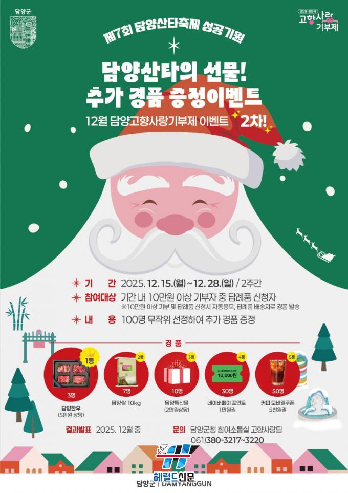 [Çì·²µå½Å¹® = Àü¿µ±Ô ±âÀÚ] ´ã¾ç±ºÀÌ ¿¬¸»À» ¸Â¾Æ 12¿ù 15ÀϺÎÅÍ 28ÀϱîÁö 2ÁÖ°£ ¡®´ã¾ç»êŸÀÇ ¼±¹°! °íÇâ»ç¶û±âºÎ Ãß°¡ °æÇ° ÁõÁ¤ À̺¥Æ®¡¯¸¦ ½Ç½ÃÇÑ´Ù.