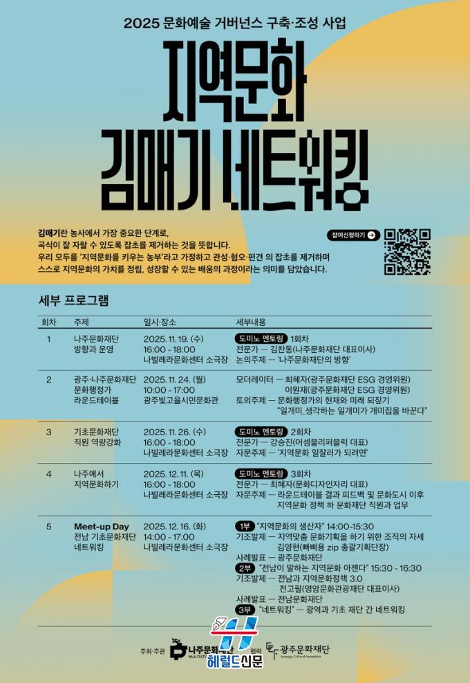 ³ªÁÖ¹®ÈÀç´ÜÀº À̹ø ¹Ô¾÷µ¥À̸¦ ÅëÇØ 2026³â Àç´Ü »ç¾÷ ÀÚ¹®Ã¼°è¸¦ ´õ¿í °ø°íÈ÷ Çϰí Àü³²±Ç ¹®ÈÀç´Ü °£ Çù·Â ³×Æ®¿öÅ© È®ÀåÀ» ÅëÇØ Áö¼Ó °¡´ÉÇÑ Áö¿ª¹®È »ýŰè Á¶¼º¿¡ ¼Óµµ¸¦ ³¾ °èȹÀÌ´Ù.