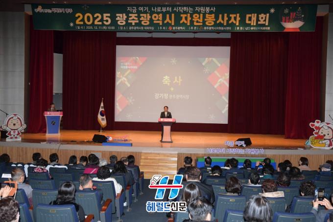 [Çì·²µå½Å¹® = ³ë½Â¾ð ±âÀÚ] ±¤ÁÖ±¤¿ª½Ã(½ÃÀå °±âÁ¤)´Â ¡®¼¼°è ÀÚ¿øºÀ»çÀÚÀÇ ³¯¡¯(12¿ù5ÀÏ)À» ±â³äÇØ 11ÀÏ ½Ãû ´ëȸÀǽǿ¡¼ Áö¿ª»çȸ °÷°÷¿¡¼ Çå½ÅÇØ ¿Â ÀÚ¿øºÀ»çÀÚµéÀ» °Ý·ÁÇÏ´Â ¡®2025 ±¤ÁÖ±¤¿ª½Ã ÀÚ¿øºÀ»çÀÚ´ëȸ¡¯¸¦ °³ÃÖÇß´Ù.