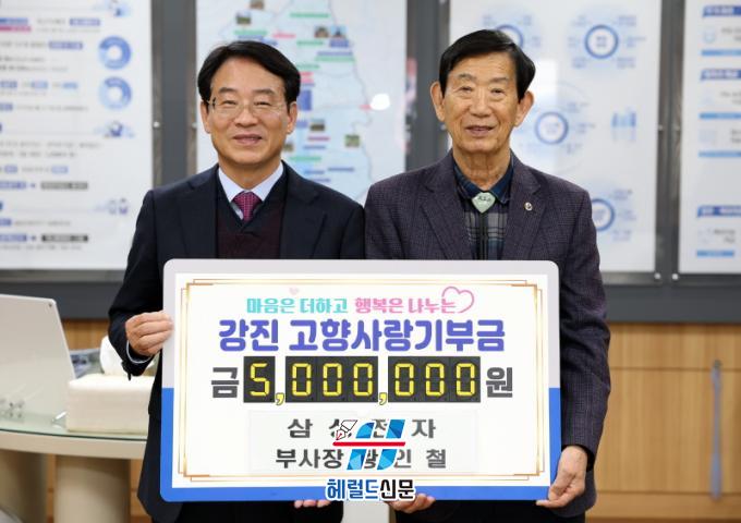 ȲÀÎö »ï¼ºÀüÀÚ ºÎ»çÀåÀº °ÁøÀ¾ Æòµ¿ Ãâ½ÅÀ¸·Î Áö³ÇØ °íÇâ»ç¶û±âºÎ±Ý 500¸¸¿ø Àü´Þ¿¡ ÀÌ¾î ¿ÃÇØµµ °Áø »ç¶ûÀ» ½ÇõÇÏ¸ç °¨µ¿À» ´õÇß´Ù. ±âŹ½Ä¿¡´Â ºÎÄ£ Ȳº´ÇÐ ¹Ù¸£°Ô»ì±â¿îµ¿ °Áø±ºÇùÀÇȸÀåÀÌ ´ë¸® Âü¼®Çß´Ù.