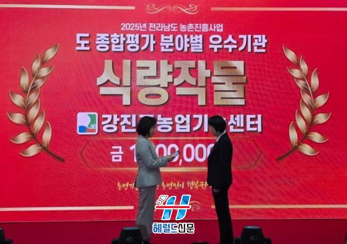 [Çì·²µå½Å¹® = Àü¿µ±Ô ±âÀÚ] °Áø±º ³ó¾÷±â¼ú¼¾ÅͰ¡ Áö³ 11ÀÏ Àü¶ó³²µµ°¡ ÁÖ°üÇÑ 2025³â ³óÃÌÁøÈï»ç¾÷ Á¾ÇÕÆò°¡¿¡¼ ¡®½Ä·®ÀÛ¹° ±â¼úº¸±Þ ºÐ¾ß¡¯ ¿ì¼ö±â°üÀ¸·Î ¼±Á¤µÇ´Â ¿µ¿¹¸¦ ¾È¾Ò´Ù.