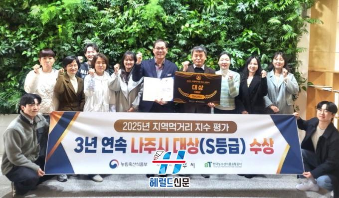 [Çì·²µå½Å¹® = ³ë½Â¾ð ±âÀÚ] ³ªÁÖ½Ã(½ÃÀå À±º´ÅÂ)´Â Áö³ 9ÀÏ ¿¸° ¡®2025 Àü±¹ Áö¿ª¸Ô°Å¸® Áö¼ö Æò°¡¡¯¿¡¼ 3³â ¿¬¼ÓÀ¸·Î ´ë»óÀ» ¹Þ¾Ò´Ù°í ¹àÇû´Ù.