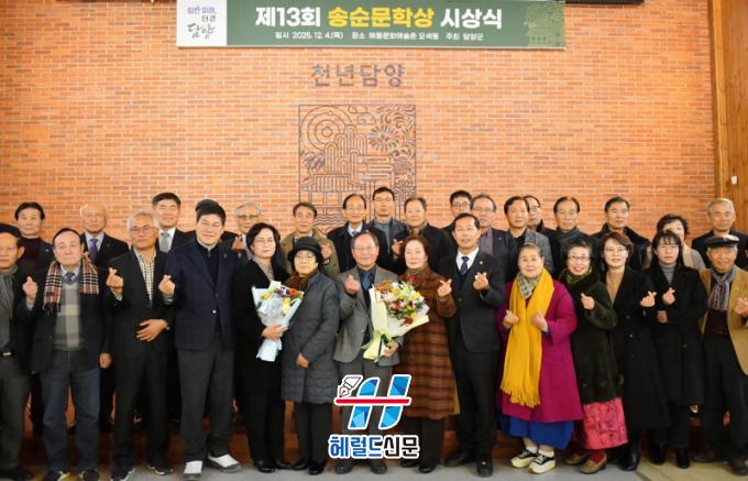 [Çì·²µå½Å¹® = Àü¿µ±Ô ±âÀÚ] ´ã¾ç±º(±º¼ö Á¤Ã¶¿ø)Àº ¸é¾Ó ¼Û¼ø ¼±»ýÀÇ ¹®ÇÐÁ¤½ÅÀ» ±â¸®°í Áö¿ª ¹®ÇÐÀÇ Àúº¯À» ³ÐÈ÷±â À§ÇØ ÁøÇàÇÑ Á¦13ȸ ¼Û¼ø¹®Çл󿡼 ´ë»ó ºÎ¹® °¼º³² ½ÃÀÎ, »õ·Î¿î½ÃÀλó ºÎ¹® °Çý¿ø ½ÃÀÎÀ» ÃÖÁ¾ ¼ö»óÀÚ·Î ¼±Á¤Çß´Ù°í 12ÀÏ ¹àÇû´Ù.