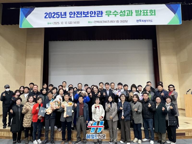 [Çì·²µå½Å¹® = ³ë½Â¾ð ±âÀÚ] ÀüºÏƯº°ÀÚÄ¡µµ´Â 12ÀÏ ÀüºÏÅ×Å©ºñÁî¼¾ÅÍ¿¡¼¡®2025³â ¾ÈÀüº¸¾È°ü ¿ì¼ö¼º°ú ¹ßǥȸ¡¯¸¦ °³ÃÖÇϰí, ¿Ã ÇÑ ÇØ ¾ÈÀü½Å°í Ȱ¼ºÈ¿¡ ±â¿©ÇÑ ¿ì¼ö Ȱµ¿À» °øÀ¯Çß´Ù.