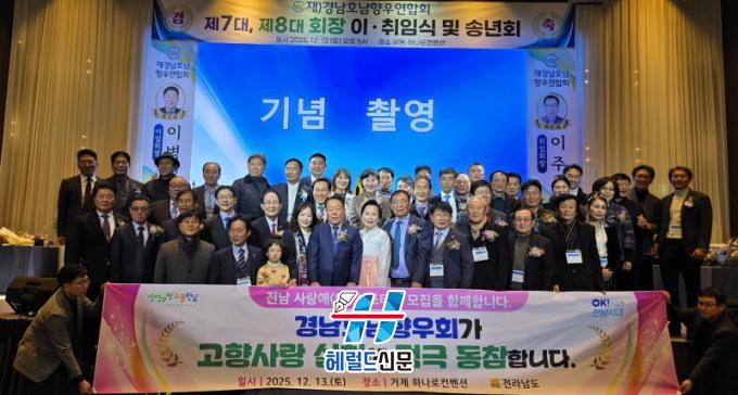 [Çì·²µå½Å¹® = ³ë½Â¾ð ±âÀÚ] Àü¶ó³²µµ´Â 13ÀÏ °æ³² °ÅÁ¦ Çϳª·ÎÄÁº¥¼Ç¿¡¼ ¿¸° °æ³²È£³²Çâ¿ì¿¬ÇÕȸ Á¦8´ë ȸÀå ÃëÀӽĿ¡ Âü¼®ÇØ °íÇâ»ç¶û ½Çõ Ä·ÆäÀÎÀ» ÆîÄ¡¸ç Çâ¿ìȸ¿ÍÀÇ ±³·ù¿Í Çù·ÂÀ» °ÈÇß´Ù.