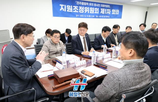 ÀüÁֽô 15ÀÏ ½Ãû 3Ãþ ´ëȸÀǽǿ¡¼ ¿ì¹ü±â ÀüÁÖ½ÃÀå°ú ÀüÁÖ½ÃÀÇȸ, üÀ°°è, ±³À°°è, ¾ð·Ð, Ã⿬±â°ü, ÇÐ°è ¹× ±¹Á¦½ºÆ÷Ã÷¡¤Çà»ç±âȹ Àü¹®°¡ µî 20¿© ¸íÀÇ À§¿øµéÀÌ Âü¼®ÇÑ °¡¿îµ¥ ¡®ÀüÁֿø²ÇÈ À¯Ä¡ ¹ü½Ã¹Î Áö¿øÀ§¿øÈ¸¡¯ Áö¿øÁ¶Á¤À§¿øÈ¸ ȸÀǸ¦ °³ÃÖÇß´Ù.
