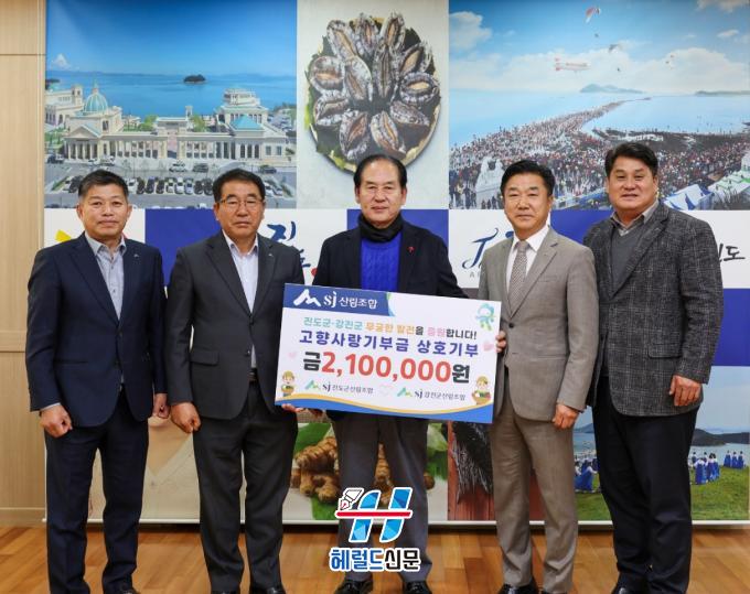 [Çì·²µå½Å¹® = Àü¿µ±Ô ±âÀÚ] °Áø±º»ê¸²Á¶ÇÕ°ú Áøµµ±º»ê¸²Á¶ÇÕ ÀÓÁ÷¿øµéÀÌ Áö³ 11ÀÏ Áøµµ±ºÃ»¿¡¼ °íÇâ»ç¶û±âºÎ±Ý 210¸¸¿øÀ» »óÈ£ Áö¿ª¿¡ ±âºÎÇß´Ù.