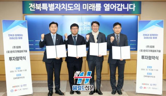 ÀüÁÖ½Ã¿Í ÀüºÏƯº°ÀÚÄ¡µµ, ÀüºÏ¿¬±¸°³¹ßƯ±¸´Â 16ÀÏ ÀüºÏƯº°ÀÚÄ¡µµÃ»¿¡¼ ź¼Ò±¹°¡»ê´Ü°ú ÀüºÏÅ×Å©ºñÁî¼¾ÅÍ ÀÔÁÖ¸¦ Èñ¸ÁÇÏ´Â (À¯)Çѱ¹±â°è¼³ºñ±â¼ú(´ëÇ¥ ÇÏÁ¤¼º)°ú ¢ß¸ð·¹(´ëÇ¥ Á¶°¿ø) µî 2°³ ±â¾÷°ú ÃÑ 356¾ï ¿ø ±Ô¸ðÀÇ ÅõÀÚÇù¾àÀ» ü°áÇß´Ù.