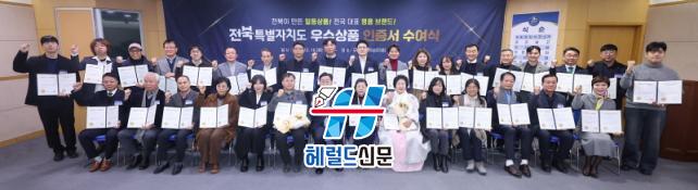 [Çì·²µå½Å¹® = ³ë½Â¾ð ±âÀÚ] ÀüºÏƯº°ÀÚÄ¡µµ´Â 16ÀÏ µµÃ»¿¡¼¡®2026³â ÀüºÏƯº°ÀÚÄ¡µµ ¿ì¼ö»óǰ ÀÎÁõ¼ ¼ö¿©½Ä¡¯À» ¿°í, ǰÁú°ú ¼ºÀ强À» °®Ãá µµ³» Áß¼Ò±â¾÷ Á¦Ç° 32°³¸¦ ¿ì¼ö»óǰÀ¸·Î ¼±Á¤Çß´Ù.