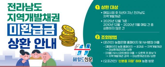 [Çì·²µå½Å¹® = ³ë½Â¾ð ±âÀÚ] Àü¶ó³²µµ°¡ ¿À´Â 31ÀϱîÁö º¸¸§¿©°£ 2025³â Àü³²µµ Áö¿ª°³¹ßä±Ç ¹Ìȯ±Þ±Ý ÀÏÁ¦»óȯ ±â°£À» ¿î¿µ, µµ¹Î ±Ç¸® º¸È£¿¡ ³ª¼±´Ù°í ¹àÇû´Ù.