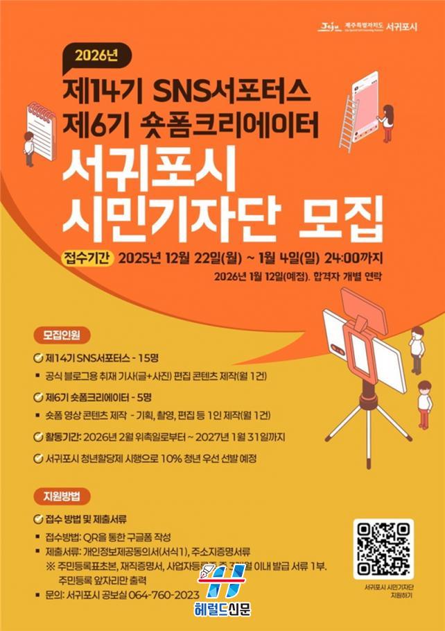 [Çì·²µå½Å¹® = ³ë½Â¾ð ±âÀÚ] ¼±ÍÆ÷½Ã´Â ½Ã¹ÎÀÌ Á÷Á¢ Âü¿©ÇÏ´Â ½ÃÁ¤ È«º¸¿Í ¾ç¹æÇâ ¼ÒÅë °È¸¦ À§ÇØ ¡®2026 ¼±ÍÆ÷½Ã ½Ã¹Î±âÀÚ´Ü(Á¦14±â SNS¼Æ÷Åͽº¡¤Á¦6±â ¼ôÆûÅ©¸®¿¡ÀÌÅÍ)¡¯À» ¸ðÁýÇÑ´Ù°í ¹àÇû´Ù.
