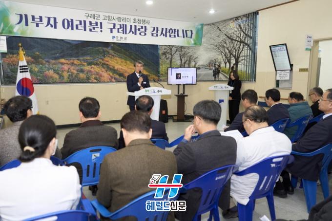 Çà»ç¿¡ Âü¼®ÇÑ ±è±¤Å ±¸·ÊÀåÇÐȸ ÀÌ»çÀåÀº ±âºÎÀÚ¸¦ ´ëÇ¥ÇØ ¡°±âºÎÀÚµéÀÇ ¼ÒÁßÇÑ ¸¶À½ÀÌ ¸ðÀÎ °íÇâ»ç¶û±âºÎ±ÝÀ¸·Î Áö¿ªÁÖ¹ÎÀ» À§ÇÑ ±ÍÁßÇÑ ÀÇ·áÀåºñ°¡ Áö¿øµÇ¾î ¶æ ±í´Ù¡±¸ç ¡°¾ÕÀ¸·Îµµ °íÇâ»ç¶û±âºÎ°¡ Áö¼ÓÀûÀ¸·Î À̾îÁö±æ ¹Ù¶õ´Ù¡±°í ¸»Çß´Ù.