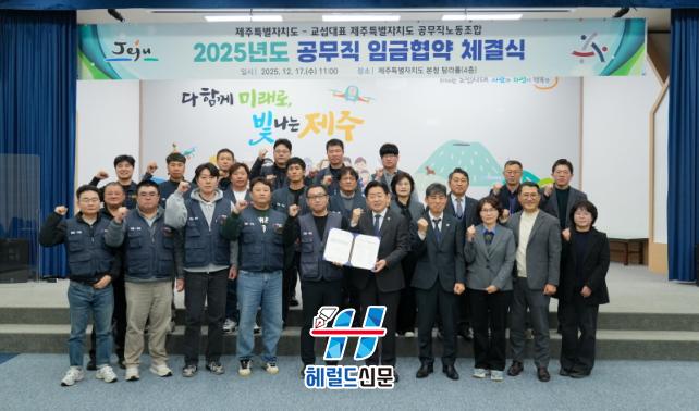 Á¦ÁÖµµ¿Í ±³¼·´ëÇ¥ ³ëµ¿Á¶ÇÕÀÎ Á¦ÁÖµµ °ø¹«Á÷³ëµ¿Á¶ÇÕÀº 17ÀÏ ¿ÀÀü µµÃ» ޶óȦ¿¡¼ ¡®2025³âµµ °ø¹«Á÷ ÀÓ±ÝÇù¾à¡¯À» ü°áÇß´Ù.