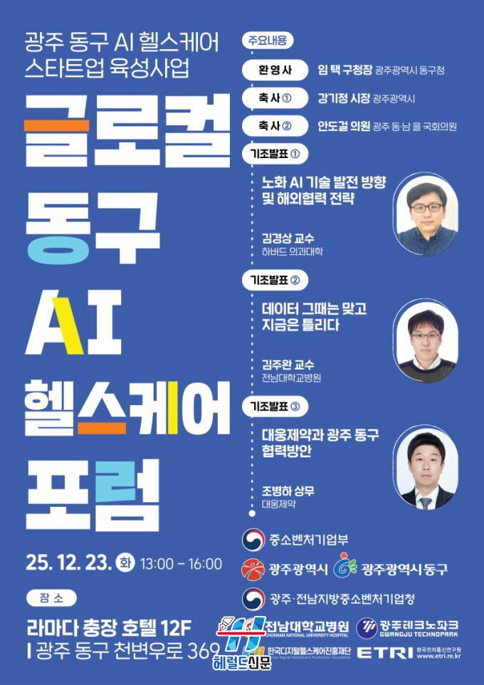 [Çì·²µå½Å¹® = Á¤µ·Ã¶ ±âÀÚ] ±¤Áֽà µ¿±¸´Â ¿À´Â 23ÀÏ ¶ó¸¶´ÙÇöóÀÚ ±¤ÁÖÃæÀåÈ£ÅÚ¿¡¼ ¡®±Û·ÎÄà µ¿±¸ ÀΰøÁö´É(AI) ÇコÄÉ¾î Æ÷·³¡¯À» °³ÃÖÇϰí, AI ±â¹Ý ÇコÄÉ¾î »ê¾÷ »ýŰè Á¶¼ºÀÇ ºñÀü°ú Àü·«À» ³íÀÇÇÒ ¿¹Á¤À̶ó°í ¹àÇû´Ù.