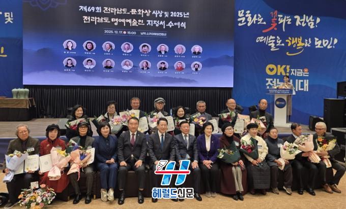 [Çì·²µå½Å¹® = ³ë½Â¾ð ±âÀÚ] ½Å¾È±º¿¡¼ Ȱµ¿Çϸç Áö¿ª ¹®È¿¹¼ú ÁøÈï¿¡ ¾ÕÀå¼ ¿Â ±èÀº¿Á ÀÛ°¡¿Í ¹Ú¼±¿ì ½ÃÀÎÀÌ Àü¶ó³²µµÀÇ Áö¿ª ¹®È ºÐ¾ß °¡Àå ±ÇÀ§ ÀÖ´Â »óÀ¸·Î ²ÅÈ÷´Â ¡®Á¦69ȸ Àü¶ó³²µµ ¹®È»ó¡¯À» ¼ö»óÇß´Ù.