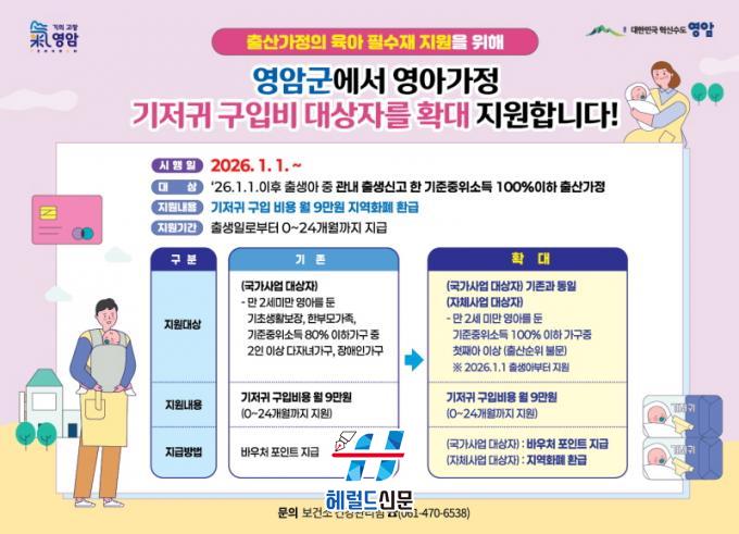 [Çì·²µå½Å¹® = ¼Û±Ù³² ±âÀÚ] ¿µ¾Ï±º(±º¼ö ¿ì½ÂÈñ)ÀÌ Ãâ»ê °¡Á¤ÀÇ À°¾Æ ºÎ´ã ¿ÏÈ, ¾çÀ° Ä£È È¯°æ Á¶¼º µîÀ» À§ÇØ ³»³âºÎÅÍ ¿µ¾Æ ±âÀú±Í ±¸ÀÔºñ Áö¿øÀ» Ãâ»ý¾Æ 70% ¼öÁØÀ¸·Î È®´ëÇÑ´Ù.