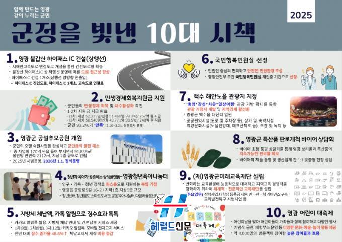 ÀÌ¾î ¿ì¼ö½ÃÃ¥¿¡´Â ¡ã¹Î»ý°æÁ¦È¸º¹Áö¿ø±Ý Áö¿ø ¡ã¿µ±¤±º °ø¼³Ãß¸ð°ø¿ø °³¿øÀÌ Æ÷ÇԵǾúÀ¸¸ç, Àå·Á½ÃÃ¥À¸·Î´Â ¡ãû³â°ú À°¾Æ°¡ °øÁ¸ÇÏ´Â »ó»ý Ç÷§Æû-¿µ±¤Ã»³âÀ°¾Æ³ª´®ÅÍ ¡ãÁö¹æ¼¼ ü³³¾× Ä«Åå ¾Ë¸² ¡¼öÈ¿°ú°¡ À̸§À» ¿Ã·È´Ù. ³ª¸ÓÁö 5°ÇÀº ¡ã±¹¹ÎÇູ¹Î¿ø½Ç ¼±Á¤ ¡ã¹é¼ö ÇØ¾È³ëÀ» °ü±¤Áö ÁöÁ¤ ¡ã¿µ±¤±º Ư»êǰ ÆÇ·Î°³Ã´ ¹ÙÀÌ¾î »ó´ãȸ ¡ã(Àç)¿µ±¤±º¹Ì·¡±³À°Àç´Ü ¼³¸³ ¡ã¿µ±¤ ¾î¸°ÀÌ ´ëÃàÁ¦ÀÌ´Ù.