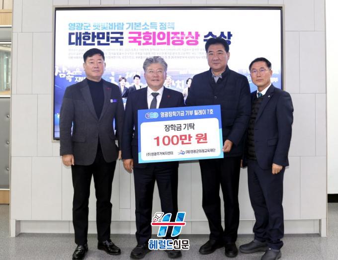 ÀÌ¾î ¢ß¿µ±¤Áְź¹Áö¼¾ÅÍ(´ëÇ¥ ±è±Ù¼ö)´Â ¿µ±¤ÀåÇбâ±Ý ±âºÎ ¸±·¹ÀÌ 7È£·Î ÀåÇÐ±Ý 100¸¸ ¿øÀ» ±âŹÇß´Ù. ±è±Ù¼ö ´ëÇ¥´Â ¡°Áö¿ª»çȸ¿Í »ó»ýÇÏ´Â ±â¾÷À¸·Î¼ ÇлýµéÀÇ ²Þ°ú µµÀüÀ» ÀÀ¿øÇϱâ À§ÇØ ÀÇ¹Ì ÀÖ´Â ³ª´®À¸·Î µ¹·Áµå¸®°í ½Í¾ú´Ù¡±¶ó°í ¸»Çß´Ù.