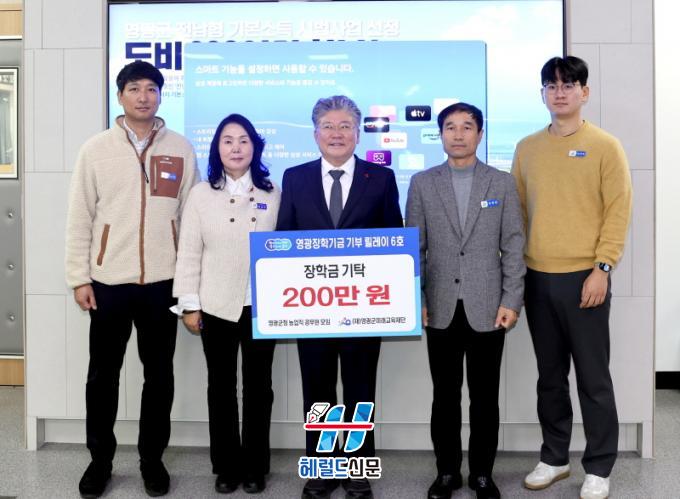 ¿µ±¤±ºÃ» ³ó¾÷Á÷ °ø¹«¿ø ¸ðÀÓÀº ¿µ±¤ÀåÇбâ±Ý ±âºÎ ¸±·¹ÀÌ 6È£·Î ÀåÇÐ±Ý 200¸¸ ¿øÀ» ±âŹÇß´Ù. ÀÌ±Ý¾È ³ó¾÷À¯Åë°úÀåÀº ¡°¿µ±¤±º ³ó¾÷À» Ã¥ÀÓÁö´Â °øÁ÷Àڷμ ¿µ±¤ÀÇ ¹Ì·¡¸¦ À̲ø ÀÎÀç À°¼º¿¡ ÇÔ²²ÇÏ°í ½Í¾ú´Ù¡±¶ó¸ç ¡°ÀÛÀº Á¤¼ºÀÌÁö¸¸ ÇлýµéÀÌ ²ÞÀ» Ű¿ö ³ª°¡´Â µ¥ º¸ÅÆÀÌ µÇ±â¸¦ ¹Ù¶õ´Ù¡±¶ó°í ÀüÇß´Ù.
