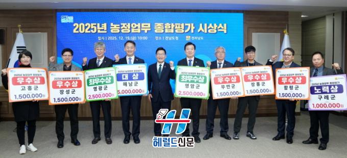 [Çì·²µå½Å¹® = ³ë½Â¾ð ±âÀÚ] Àü¶ó³²µµ´Â 2025³â ³óÁ¤¾÷¹« Á¾ÇÕÆò°¡ °á°ú ÇØ³²±ºÀÌ ´ë»óÀ» ¹Þ¾Ò´Ù°í ¹àÇû´Ù. ÃÖ¿ì¼ö»óÀº ¿µ±¤±º¡¤¿µ¾Ï±º, ¿ì¼ö»óÀº À强±º¡¤°íÈﱺ¡¤ÇÔÆò±º¡¤ÀåÈﱺ¡¤¹«¾È±º, ³ë·Â»óÀº ±¸·Ê±ºÀÌ ¼±Á¤µÆ´Ù.