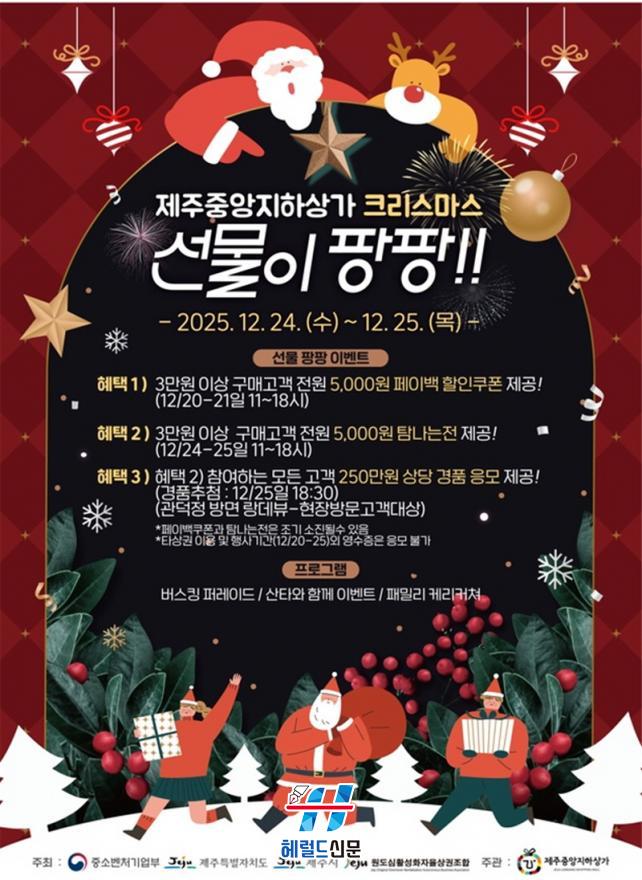 [Çì·²µå½Å¹® = ³ë½Â¾ð ±âÀÚ] Á¦Áֽô ¿À´Â 12¿ù 24ÀÏ(¼ö)°ú 25ÀÏ(¸ñ) ¿ÀÀü 11½ÃºÎÅÍ ¿ÀÈÄ 6½Ã±îÁö Á¦ÁÖÁß¾ÓÁöÇÏ»ó°¡ ÀÏ´ë¿¡¼ ¡®Å©¸®½º¸¶½º: ¼±¹°ÀÌ ÆÎÆÎ¡¯ ¼¼ÀÏ Æä½ºÅ¸¸¦ °³ÃÖÇÑ´Ù.