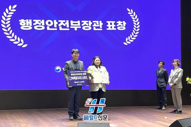 [Çì·²µå½Å¹® = ³ë½Â¾ð ±âÀÚ] ¼øÃ¢±ºÀÌ ÇàÁ¤¾ÈÀüºÎ°¡ ÁÖ°üÇÑ ¡®2025³â ÁÖ¼ÒÁ¤Ã¥¾÷¹« À¯°ø ±â°üÆò°¡¡¯¿¡¼ ¿ì¼ö±â°üÀ¸·Î ¼±Á¤µÅ ÇàÁ¤¾ÈÀüºÎ Àå°ü ǥâ°ú ÇÔ²² Ưº°±³ºÎ¼¼ 4õ¸¸ ¿øÀ» ¼ö»óÇß´Ù°í 22ÀÏ ¹àÇû´Ù.